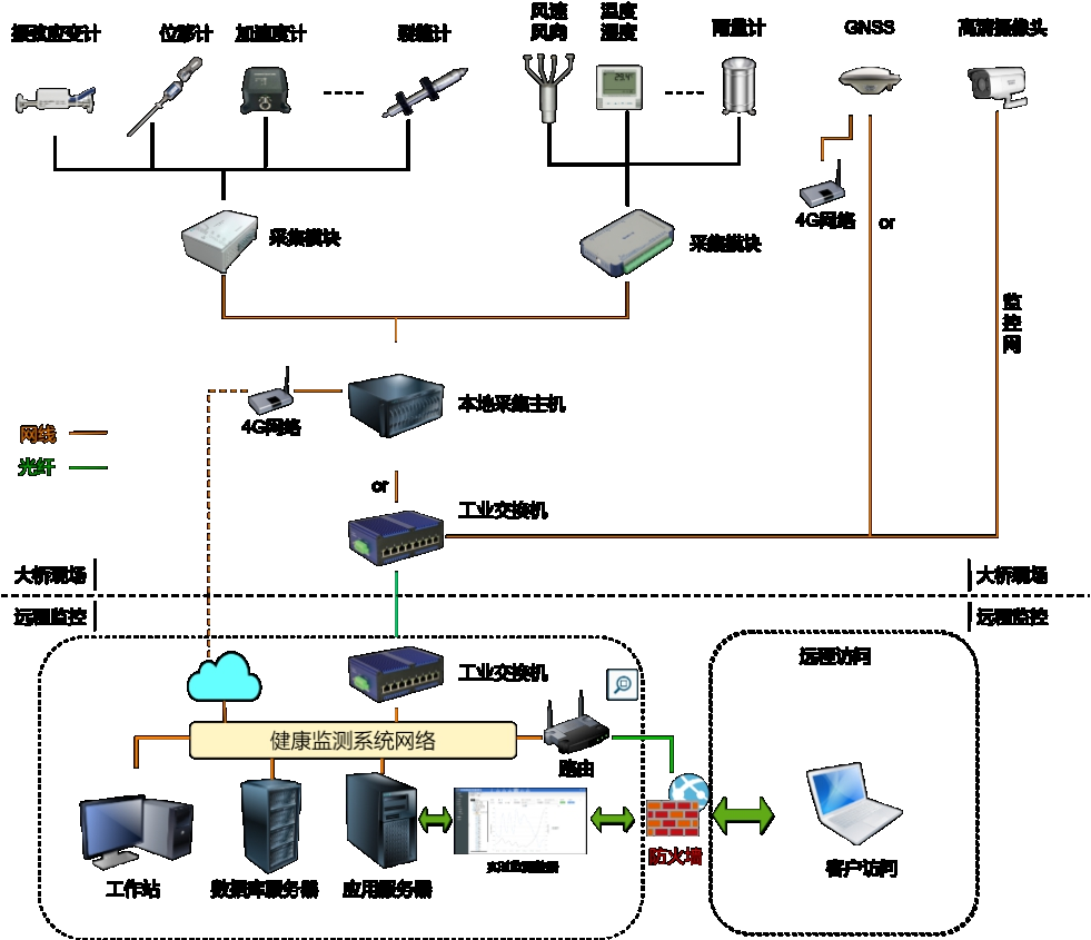 本項(xiàng)目主要提供動(dòng)態(tài)數(shù)據(jù)采集儀、低頻振動(dòng)傳感器、拉繩位移計(jì)、雙軸傾角、振弦應(yīng)變計(jì)、風(fēng)速風(fēng)向儀、溫濕度計(jì)、電流數(shù)據(jù)采集儀、差壓變送器、高清攝像機(jī)、BY-IPCS監(jiān)測(cè)軟件、工控機(jī)、交換機(jī)并且負(fù)責(zé)安裝實(shí)施和系統(tǒng)調(diào)試。