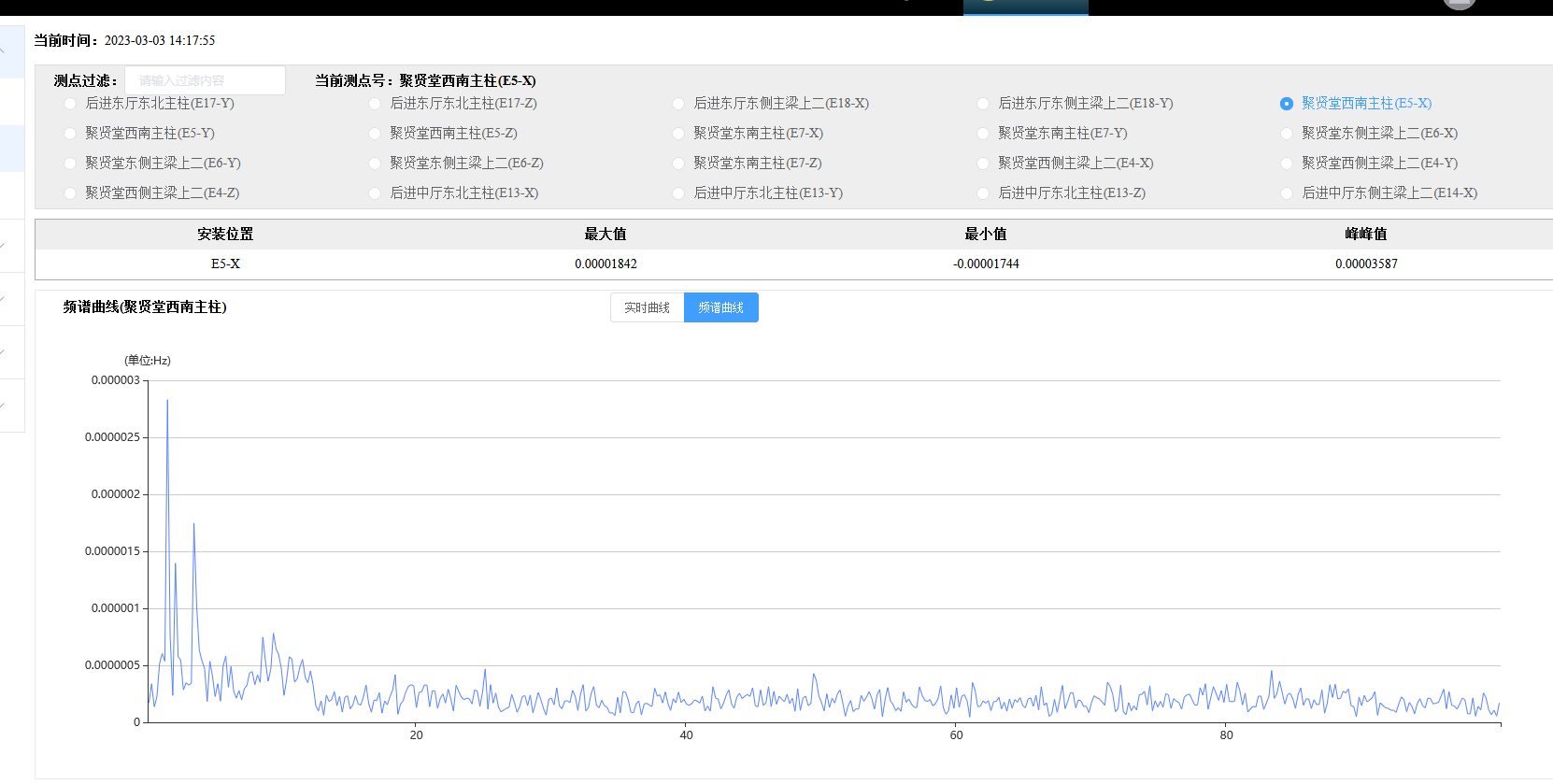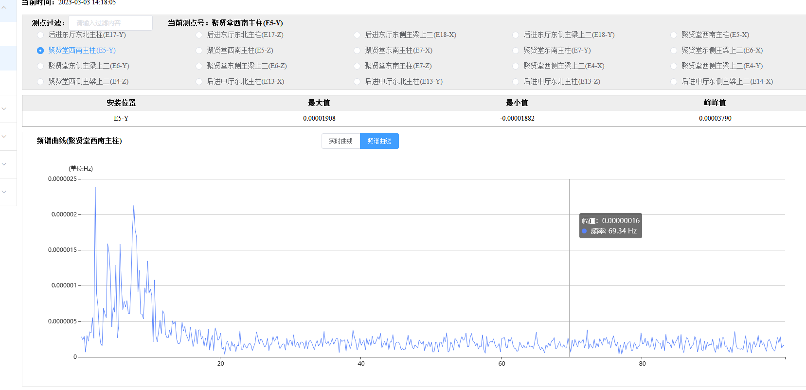 本項目主要針對各測點在不同時刻的振動幅值波動是否有超既定標(biāo)準(zhǔn)以及其卓越頻率是否發(fā)生明顯變化,地鐵振動運(yùn)營所致振動是否對陳家祠產(chǎn)生較為嚴(yán)重的影響,這兩個問題進(jìn)行了數(shù)據(jù)統(tǒng)計和分析,本項目主要提供動態(tài)數(shù)據(jù)采集儀、低頻振動傳感器。