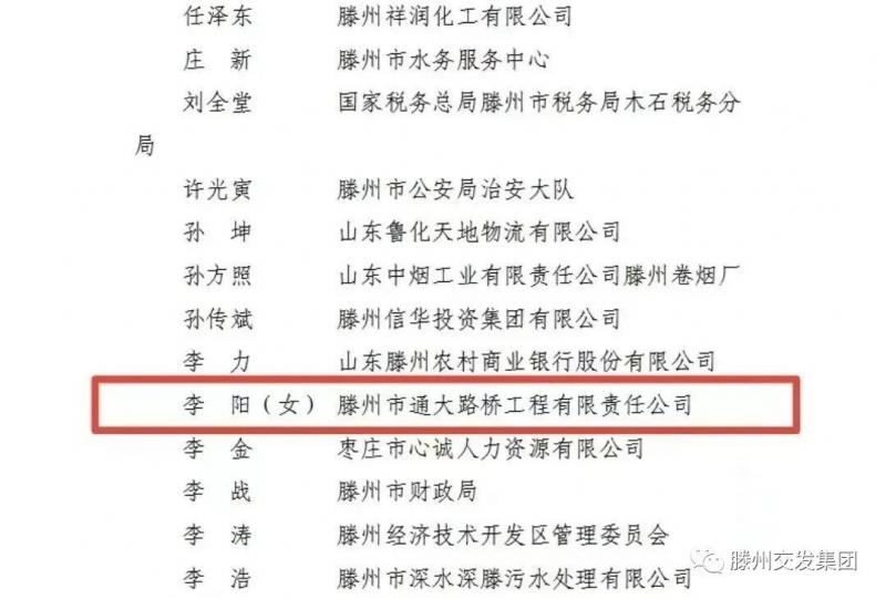 市交發(fā)集團通大路橋公司李陽同志榮獲“滕州市五一勞動獎章”。