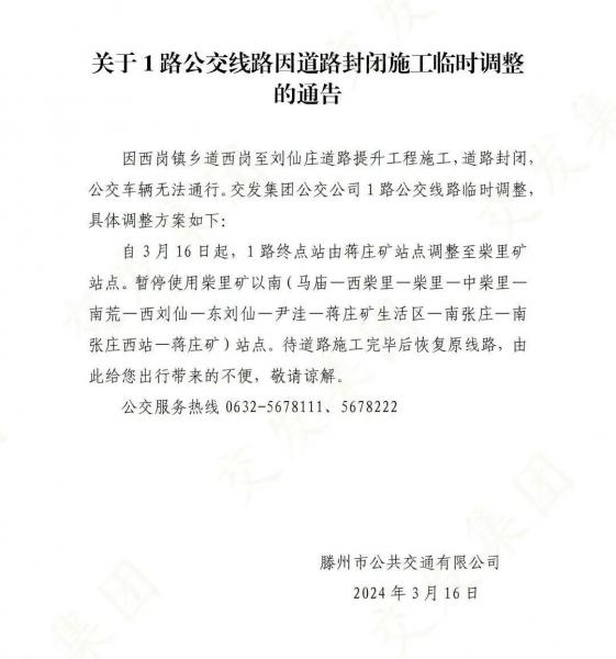 關(guān)于1路公交線(xiàn)路因道路封閉施工臨時(shí)調(diào)整的通告