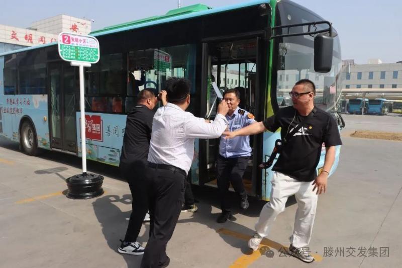模擬公交駕駛員發(fā)現(xiàn)乘客帶有不明物品乘車,乘客不配合正常安全檢查,欲強(qiáng)行乘車,并與駕駛員發(fā)生爭(zhēng)執(zhí),駕駛?cè)藛T立即向公安和公司匯報(bào)情況。隨后110民警和公司管理人員趕到現(xiàn)場(chǎng),對(duì)攜帶的違禁物品進(jìn)行檢查,對(duì)拒不配合的乘客進(jìn)行了強(qiáng)制帶離,解除了危險(xiǎn)。安全管理人員對(duì)駕駛員進(jìn)行安全叮囑后,公交車恢復(fù)運(yùn)行。