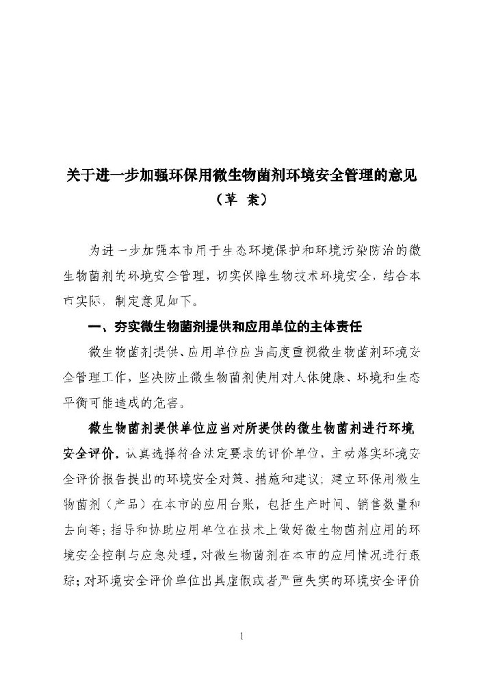 1、關(guān)于進(jìn)一步加強(qiáng)環(huán)保用微生物菌劑環(huán)境安全管理的意見(jiàn)(草案)